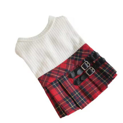 College Style Pet Dog Cute Plaid Dress for Autumn Winter